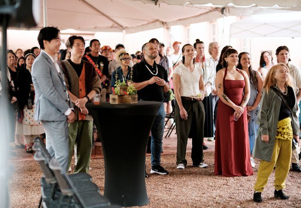 (《破土:臺灣當代原住民藝術與行動主義》展覽開幕儀式現場賓客(IAIA_MoCNA提供))
